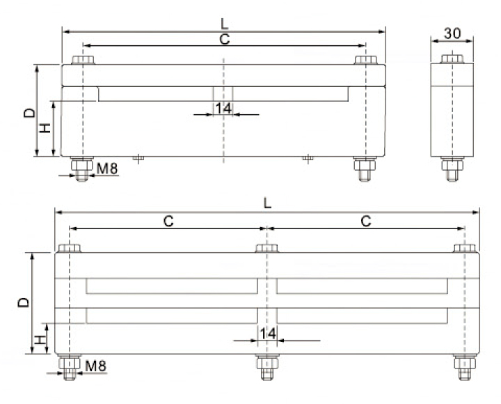 | 型號 | 母線規(guī)格 | C | D | L | H |