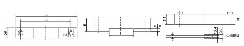 | 型號(hào) | A | B | C | D | E | 適用銅排 | 備注 |
