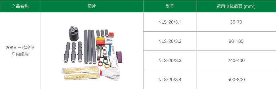 20kV三芯冷縮電纜附件系列產(chǎn)品,適用于12/20、18/24kV單芯、三芯聚乙烯和交聯(lián)聚乙烯電力電纜。冷縮電纜附件采用進(jìn)口液態(tài)硅橡膠材料制造而成,不但具有十分優(yōu)良的電氣性能,而且還具有優(yōu)異的憎水性、高彈性、使用壽命長(zhǎng)及恒定的收縮壓力等物理特性。采用冷縮電纜附件,無(wú)需明火及特殊工具,只需輕輕抽取塑料支撐條即可,就能自動(dòng)收縮復(fù)位,安裝非常方便于工作。具有良好的電氣性能和機(jī)械性能,能在各種惡劣的環(huán)境條件下長(zhǎng)期使用。具有重量輕、安裝方便等優(yōu)點(diǎn)。廣泛地應(yīng)用于電力、石油、化工、冶金、鐵路、港口和建筑各個(gè)領(lǐng)域。