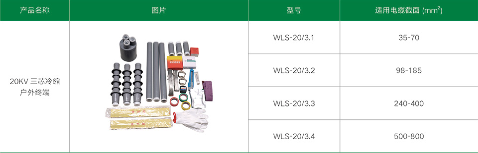 20kV三芯冷縮電纜附件系列產(chǎn)品,適用于12/20、18/24kV單芯、三芯聚乙烯和交聯(lián)聚乙烯電力電纜。冷縮電纜附件采用進口液態(tài)硅橡膠材料制造而成,不但具有十分優(yōu)良的電氣性能,而且還具有優(yōu)異的憎水性、高彈性、使用壽命長及恒定的收縮壓力等物理特性。采用冷縮電纜附件,無需明火及特殊工具,只需輕輕抽取塑料支撐條即可,就能自動收縮復(fù)位,安裝非常方便于工作。具有良好的電氣性能和機械性能,能在各種惡劣的環(huán)境條件下長期使用。具有重量輕、安裝方便等優(yōu)點。廣泛地應(yīng)用于電力、石油、化工、冶金、鐵路、港口和建筑各個領(lǐng)域。