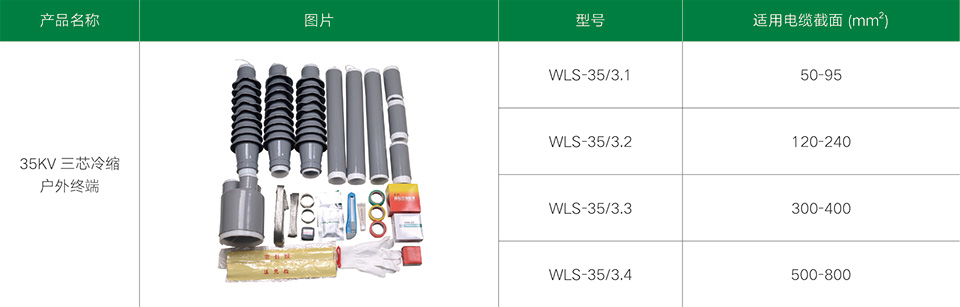 35kV三芯冷縮電纜附件系列產(chǎn)品,適用于21/35、26/35kV三芯聚乙烯和交聯(lián)聚乙烯電力電纜。冷縮電纜附件采用進口液態(tài)硅橡膠材料制造而成,不但具有十分優(yōu)良的電氣性能,而且還具有優(yōu)異的憎水性、高彈性、使用壽命長及恒定的收縮壓力等物理特性。采用冷縮電纜附件,無需明火及特殊工具,只需輕輕抽取塑料支撐條即可,就能自動收縮復(fù)位,安裝非常方便于工作。具有良好的電氣性能和機械性能,能在各種惡劣的環(huán)境條件下長期使用。具有重量輕、安裝方便等優(yōu)點。廣泛地應(yīng)用于電力、石油、化工、冶金、鐵路、港口和建筑各個領(lǐng)域。