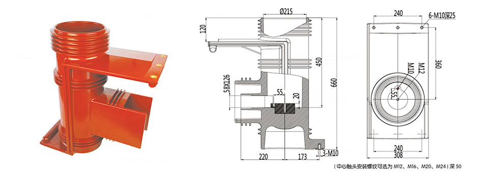 觸頭盒為環(huán)氧樹脂APG工藝壓力凝膠成型結構,用于各種手車式開關柜,起絕緣隔離和聯(lián)接過渡作用。